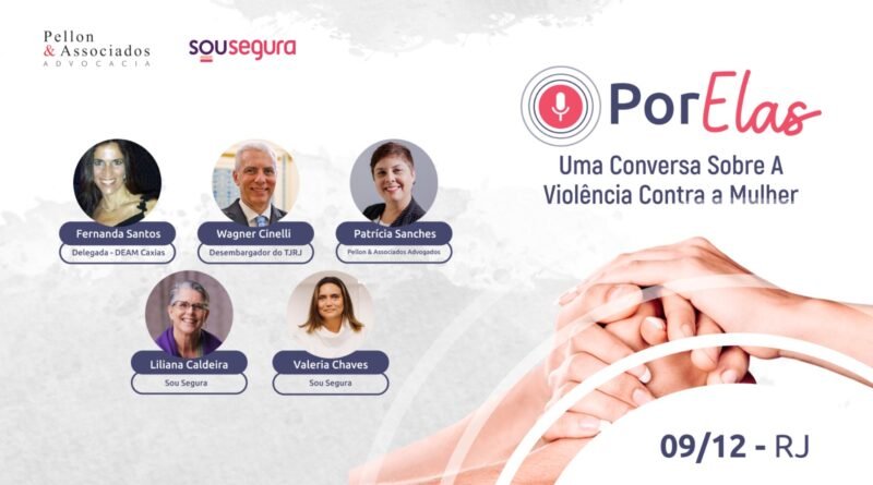 Chegou o dia do evento “Por Elas – Uma Conversa sobre violência contra a Mulher”, que a Sou Segura e o escritório Pellon & Associados promovem, nesta terça-feira (09), das 15h às 17h15.