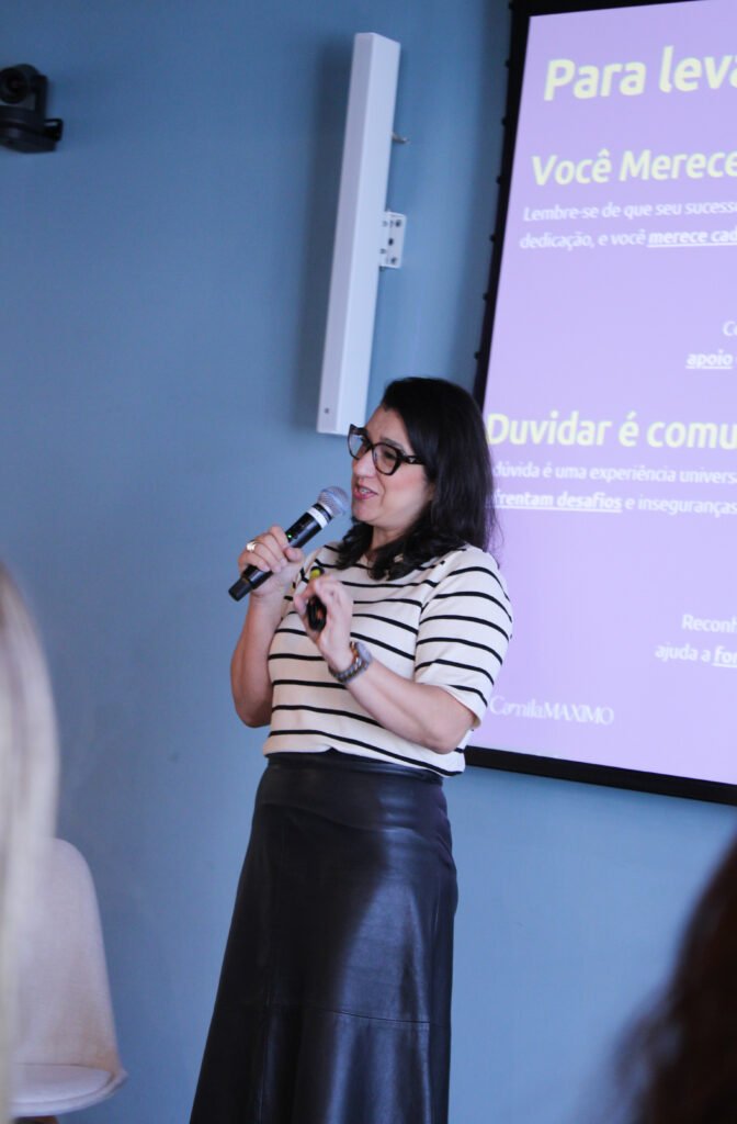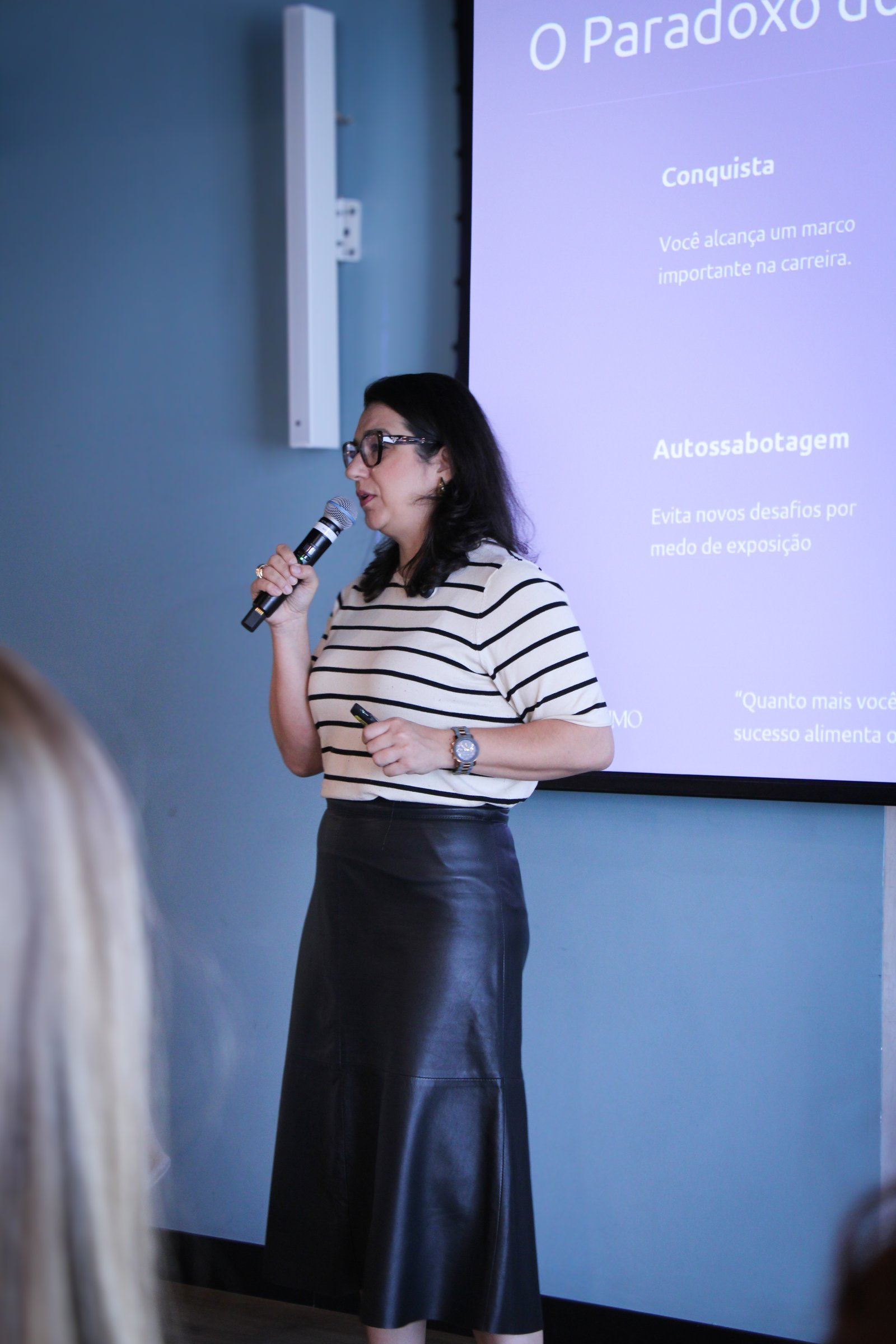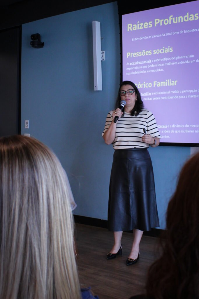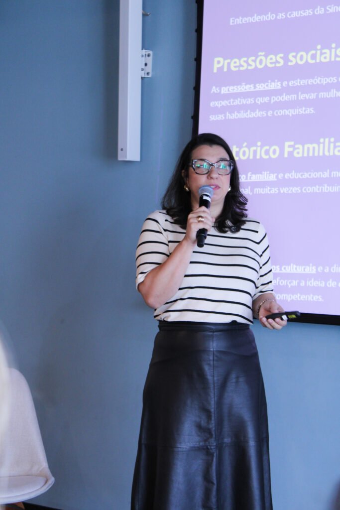 Durante a apresentação, Camila aprofundou as definições e características desse fenômeno que, longe de ser apenas uma insegurança passageira, possui raízes estruturais profundas. A prevalência é alarmante: cerca de 70% das mulheres profissionais enfrentam ou já enfrentaram essa sensação de serem “fraudes” ao longo de suas carreiras. Esse dado revela uma urgência corporativa indiscutível: a necessidade de criar redes de apoio sólidas e cultivar o reconhecimento contínuo dentro dos ambientes de trabalho.