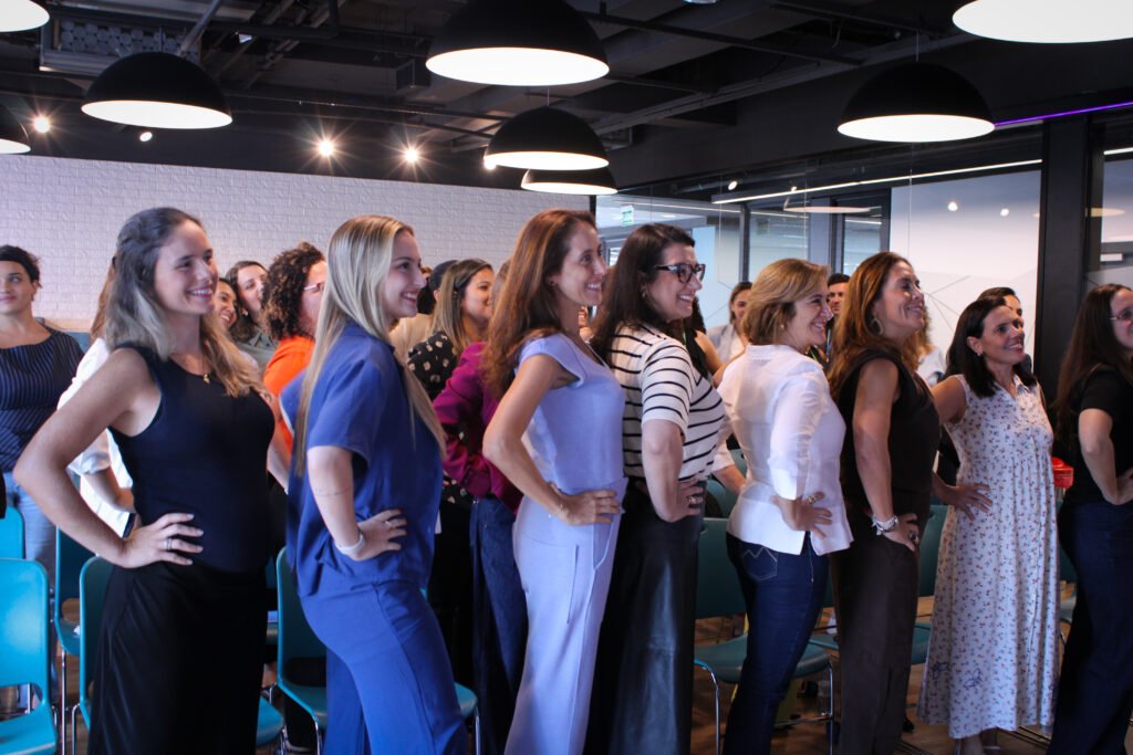 Em um gesto de união e apropriação de espaço, todas as presentes ficaram de pé e adotaram a famosa “pose da Mulher-Maravilha”: de cabeça erguida, cientes de suas competências e prontas para ocupar, com excelência técnica, os espaços de liderança que lhes são de direito.
